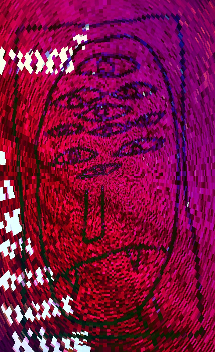 I'm amused by the PROCESS of creating the original version of this image, but I MUCH prefer the colors and pixelated swirls of this version!!! (The lie is sometimes more entertaining than the truth...)