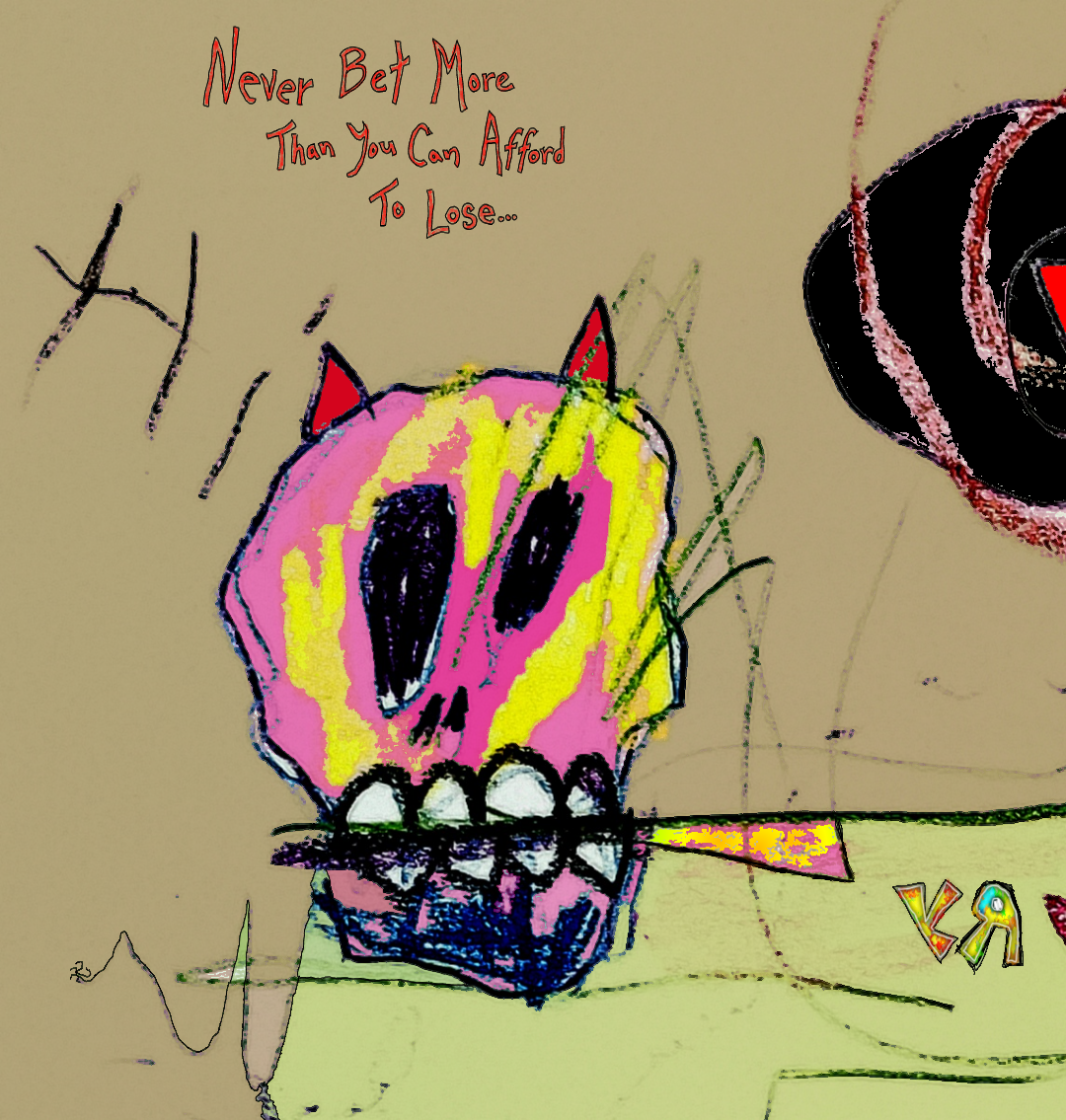 This drawing is about six months old, but I've been sitting on it until JUST the right moment! The one year birthday of NFT Showroom is just such a celebration, it feels like a good moment to unleash the BEAST! The full title to this piece is "Never Bet More Than You Can Afford to Lose..." It has a certain resonance for me (and, possibly, for some others as well!)