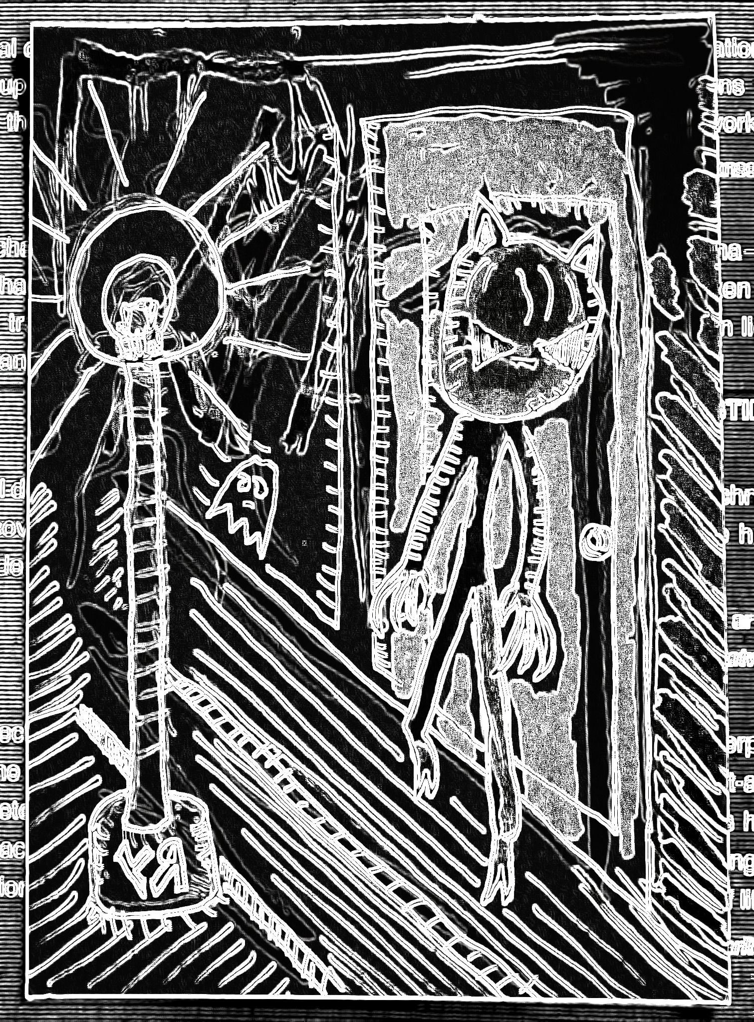 [Various pens on paper with digital embellishments and anti-color moshing.]