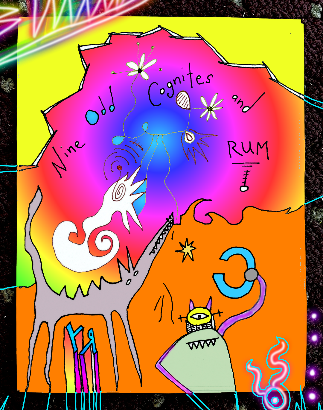 [Liner pen and felt pen on reclaimed cardboard with digital embellishments and color.]