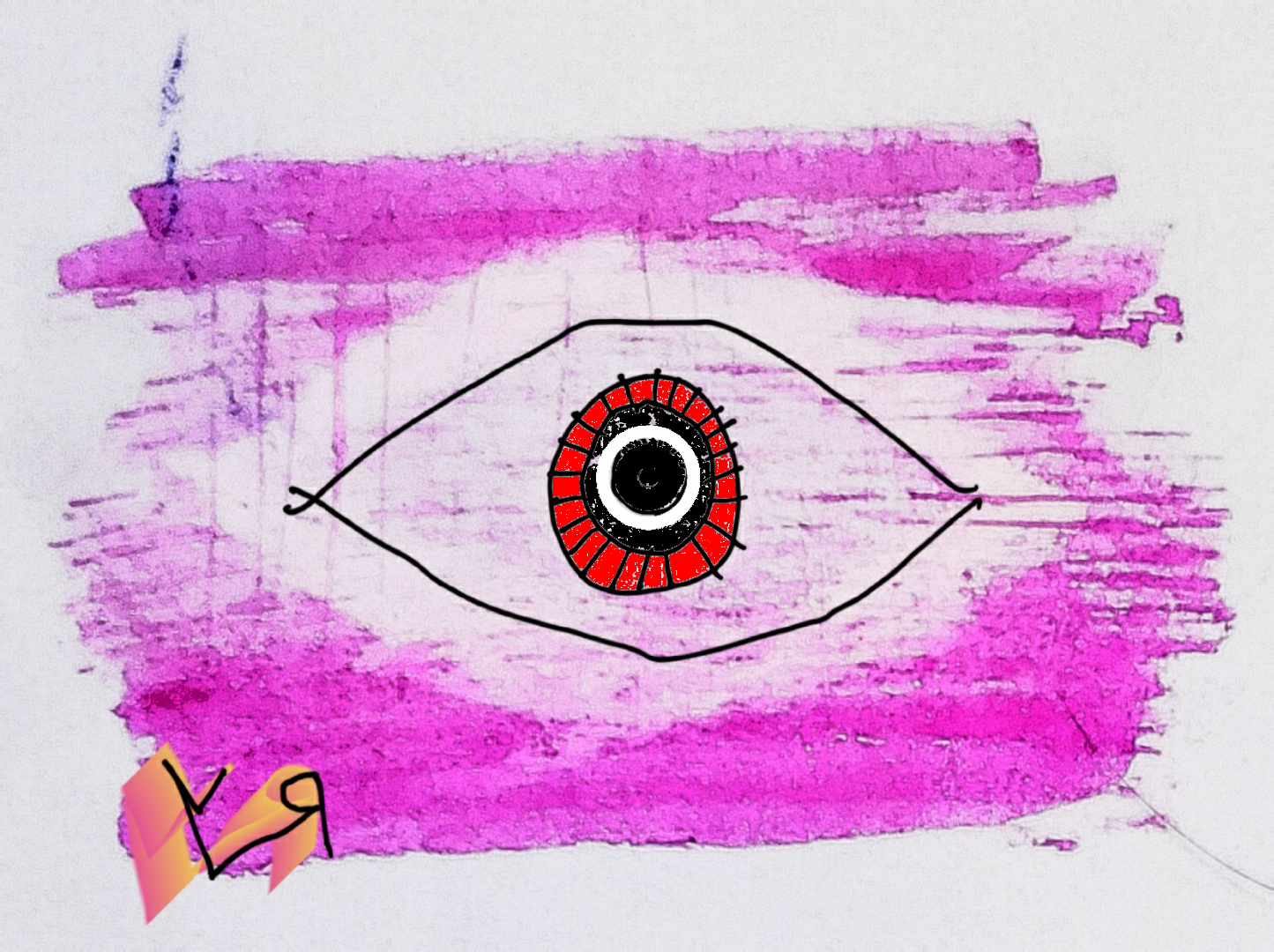 [Felt pen, crayon, and digital drawing on found notecard with digital embellishments and color.]