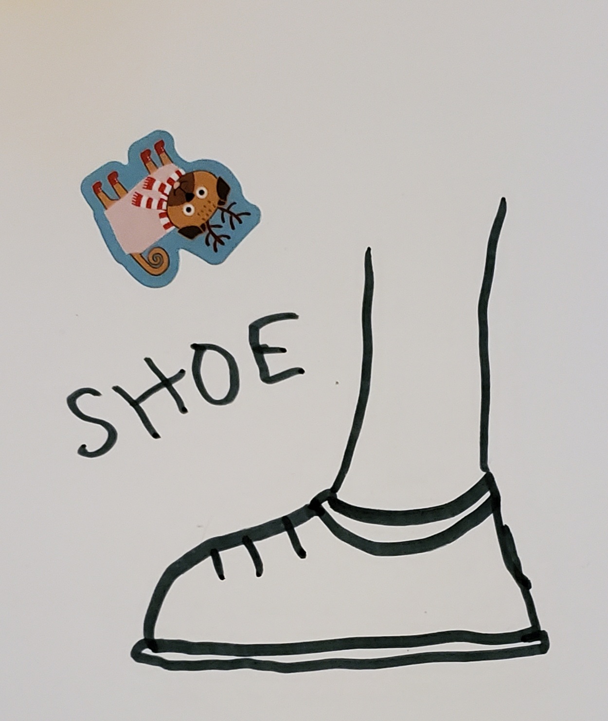 [Felt pen and sticker collage on paper.] A minimalist collaboration between myself and Felicity Echo Hanson. I think it's funny! (And if you DON'T think it's funny, grow a sense of humor!) ---Richard F. Yates (Holy Fool)