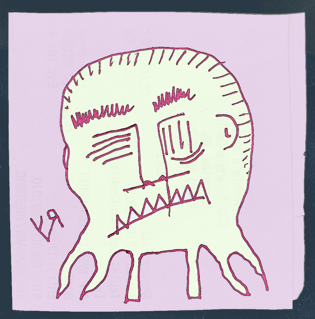 [Pen on reclaimed cardboard with digital embellishments and color.]