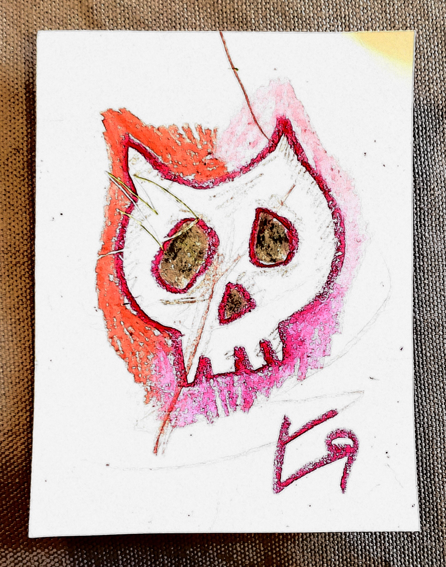 [Crayon and colored pencil on cardstock with digital embellishments and color. Approximately 3 inches by 4 inches.]