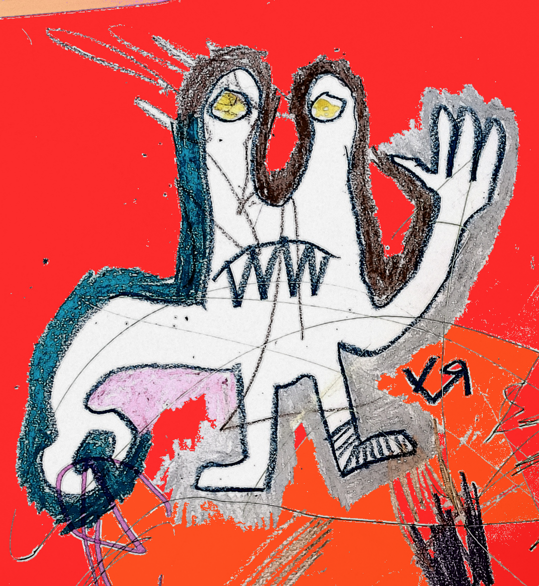 [Crayon, felt pen, and pencil on paper with digital embellishments and color. Another energetic collaboration with my almost two-year-old granddaughter, Felicity!]