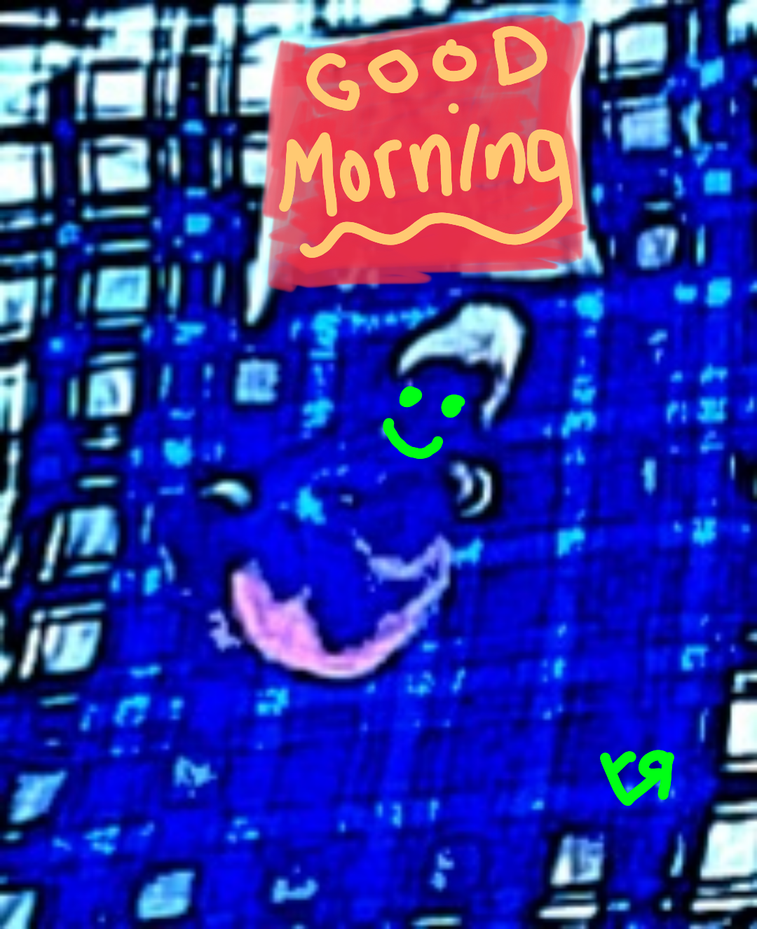 [Digital drawing over photograph (taken by my younger daughter of my granddaughter, the famous Felicity Echo Hanson (before her art career began)] with mega-moshing and digital color freakouting.] Morning is cool because it means we survived another night! And, just like Grandpa Bob used to say, "Everyday above ground is a good day!" ---Richard F. Yates (Holy Fool)