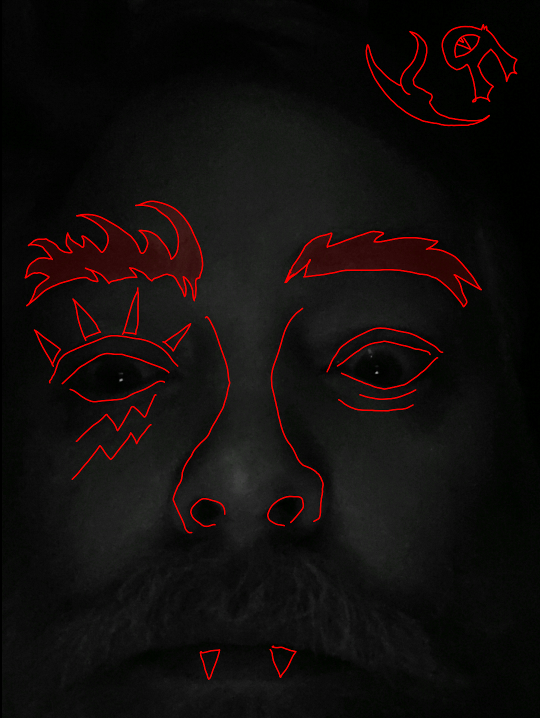 [Digital drawing over selfie taken while in bed, at night, in the dark. As all pictures of me should be taken.] I made this "self portrait" to take part in the #artvsartist thread started by the Lords of NFT Showroom. That is all... ---Richard F. Yates (Holy Fool)