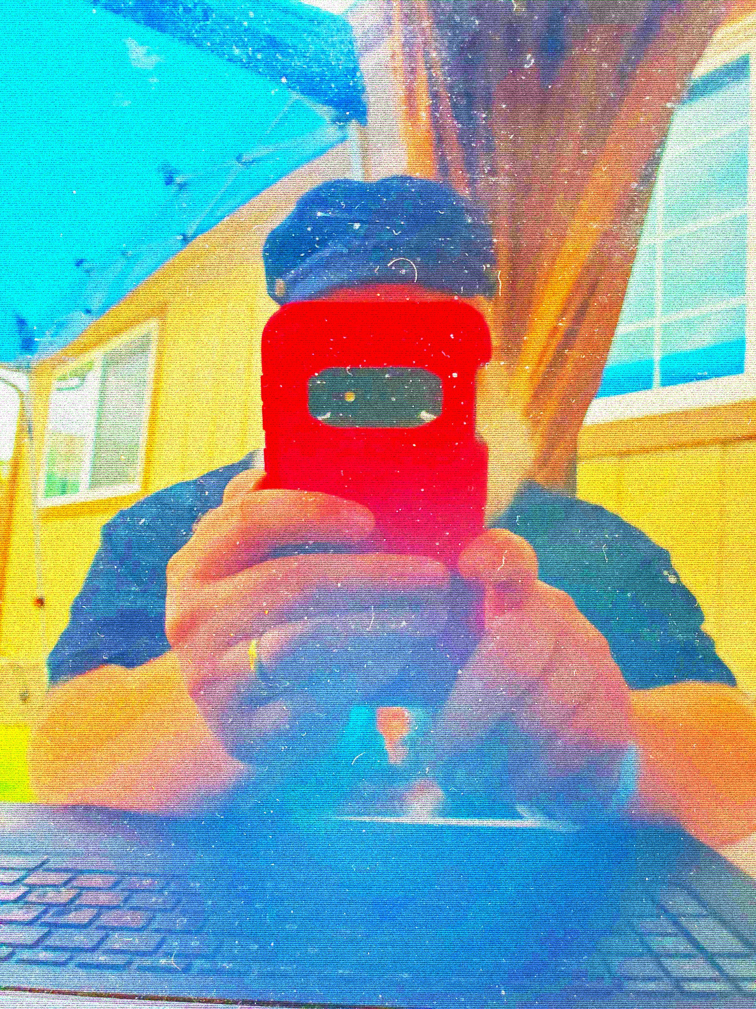 [Selfie taken with my phone - somehow - I think reflecting off my computer screen? Maybe? With digital embellishments and color.] I look better when you can't see my face! Ha! ---Richard F. Yates (Holy Fool)