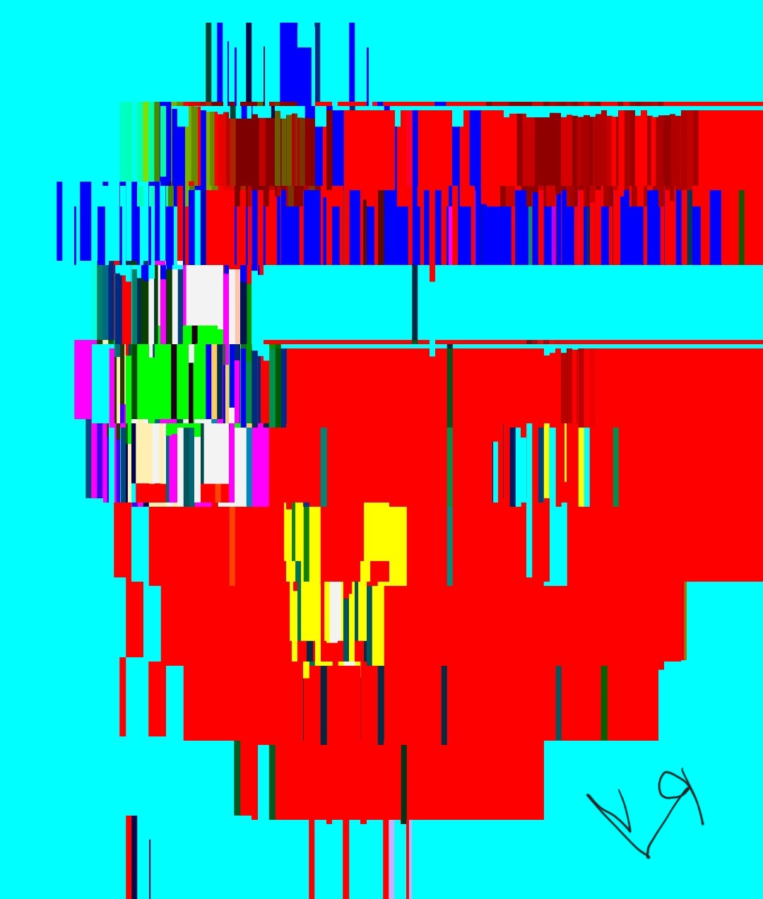 [Crayon and felt pen (I think) on reclaimed cardboard with digital embellishments, color, and moshing.] Seen floating in the water off the southern Washington coast. It's not a good thing... ---Richard F. Yates (Holy Fool)