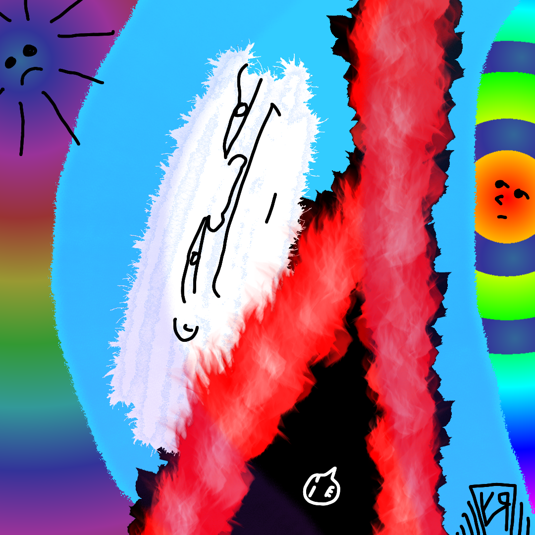 [Digital drawing created on my phone.] Even without a body, Snorb liked to travel. He particularly enjoyed the challenge of mountain climbing! (No one quite understood how he managed to scale Mt. Shlambalamba, summiting the entire glacier to the very tip-top and DURING a volcanic lava flow! Usually, a climber would need at least one leg and a hand or two just to get to the first base-camp.) Incidentally, Snorb would eventually die in his own bathroom, slipping on a bar of soap in the shower. (Again, how he slipped on a bar of soap without any feet is a true mystery.) ---Richard F. Yates (Holy Fool)