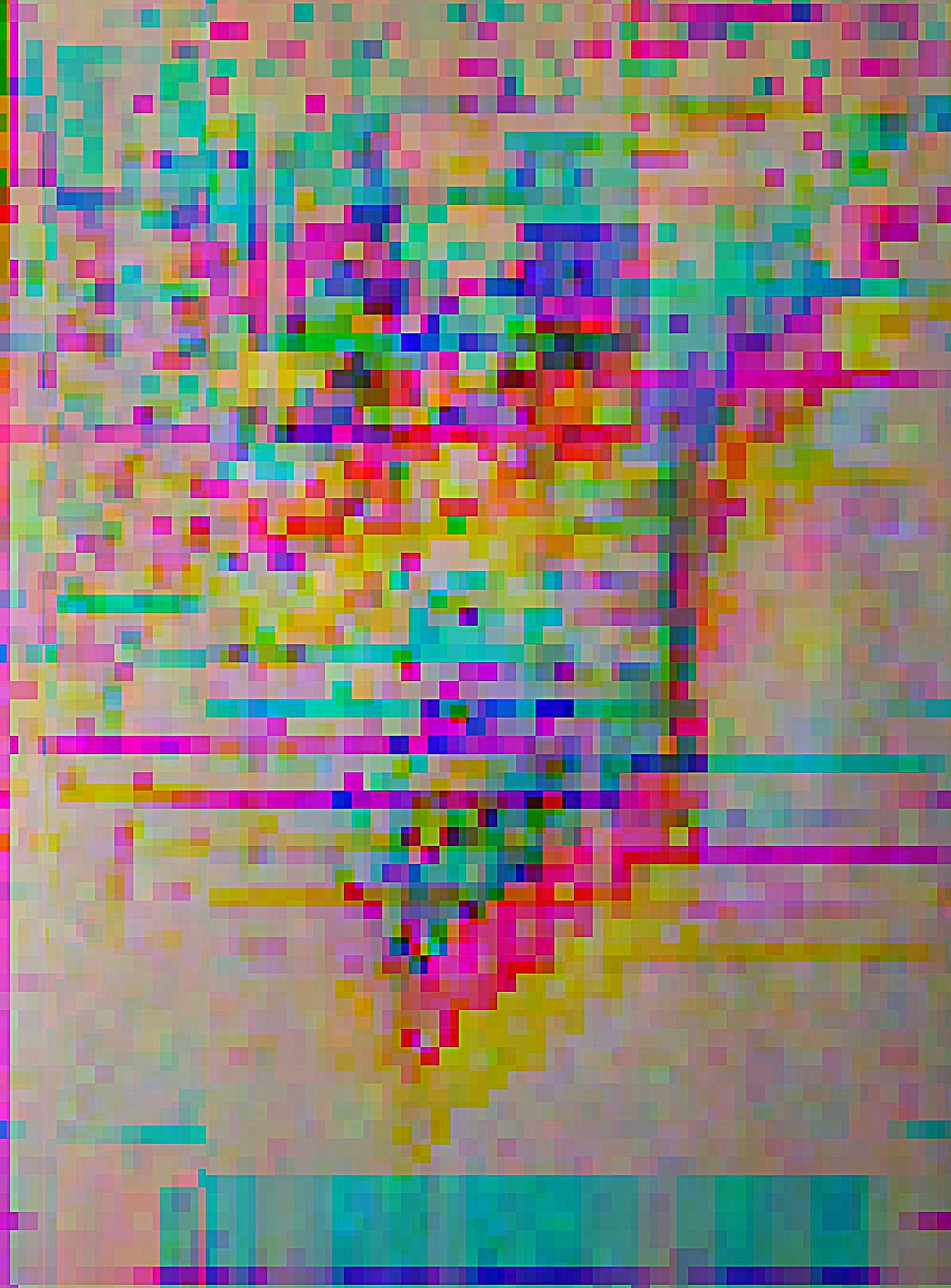 [Ink drawing on notebook page, photographed, and run thru the MOSH-MACHINE.] It started as a clearly defined image (created in analog with my own hands), but I've CRUNKED the SHIRT out of it with an online filter. Why? Why did I do that? Ain't it obvious??? I wanted to see what would happen...