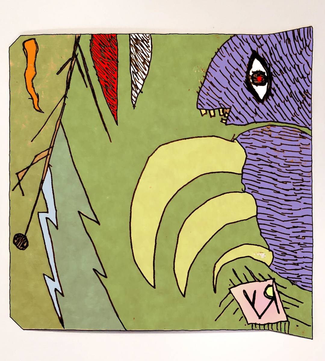 [Liner pen on reclaimed cardboard with digital embellishments and color.] Mystical Purple Sloth hangs out in the forests of the Pacific Northwest, but most of the time, you won't see it, cuz itself as a Forest Ranger. Smart little dude!