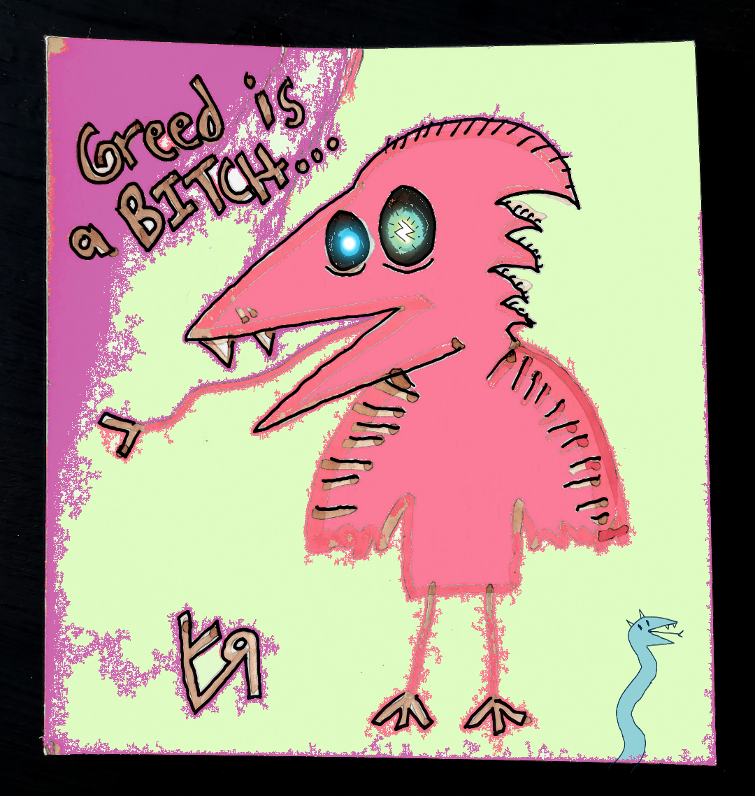 The original version of this demon bird came from a free-scribble that I did a few days ago. (Self=hypnosis with automatic drawing/writing! I stole that from the Surrealists...)