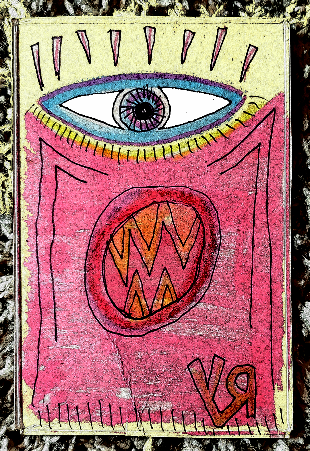 [Felt pen on Sharpie on reclaimed cardboard with digital embellishments. 2020.] Louie was a parasite. That is all... This is what he looked like (before the boot.) ---Richard F. Yates (Holy Fool)