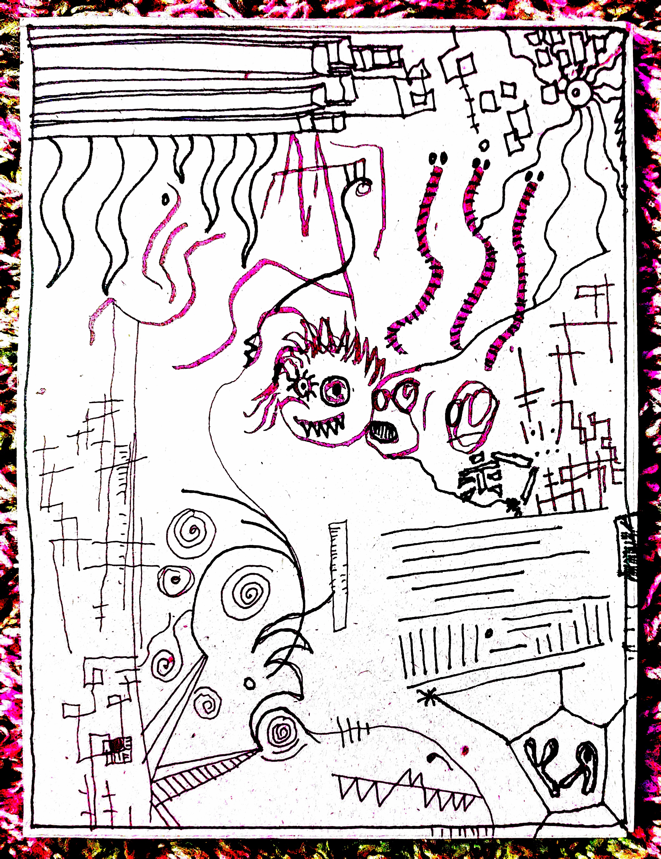 [Various pens on reclaimed cardboard with digital embellishments and color. 2020.]