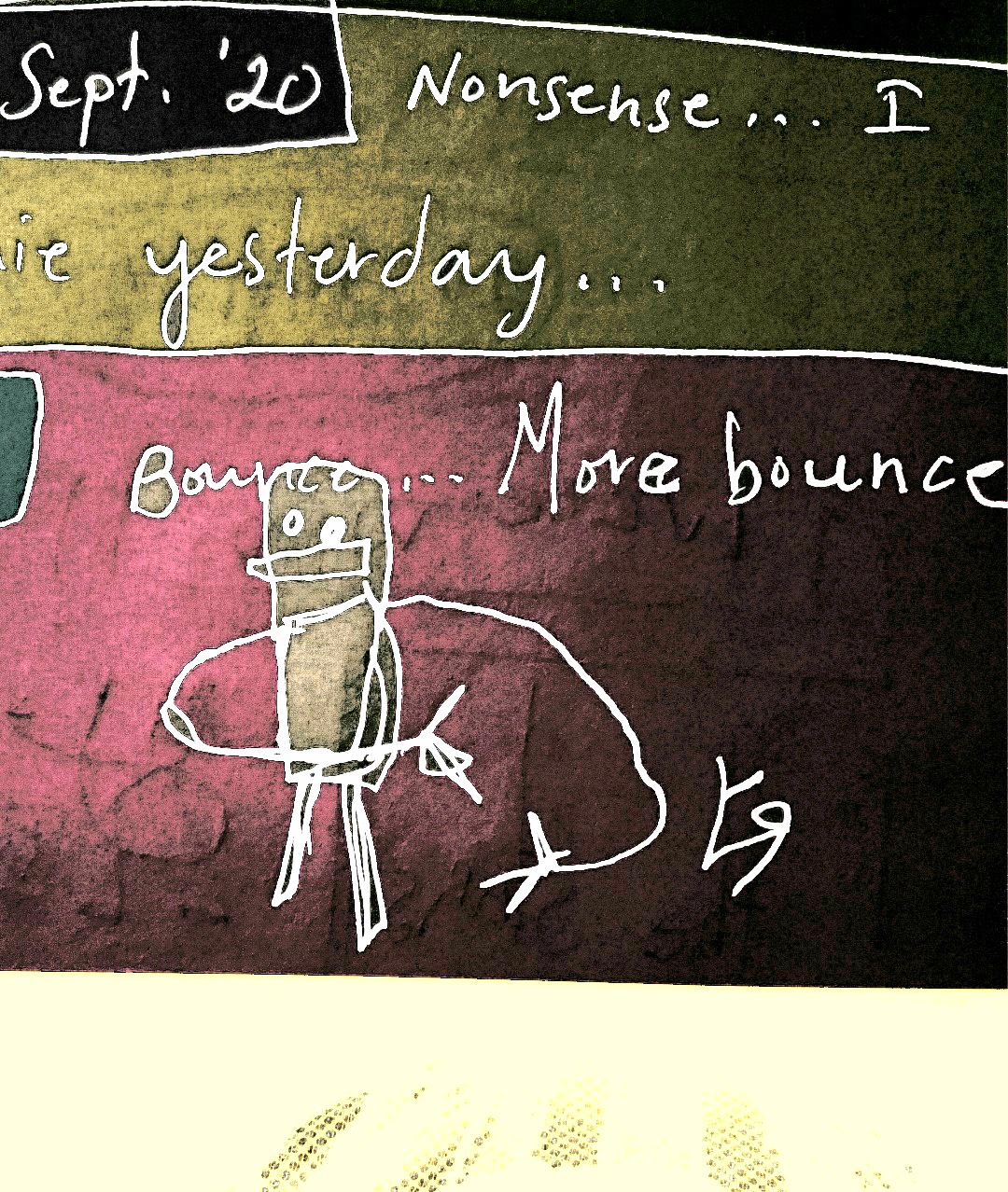 [Ink on notebook page with digital embellishments and color.]