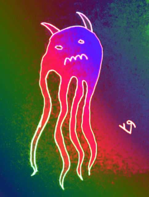[Ink on paper with digital embellishments and a pill you bought in the bathroom...] Jelly likes the beat... Sleeps with his head in the bassbin! ---Richard F. Yates (Holy Fool)