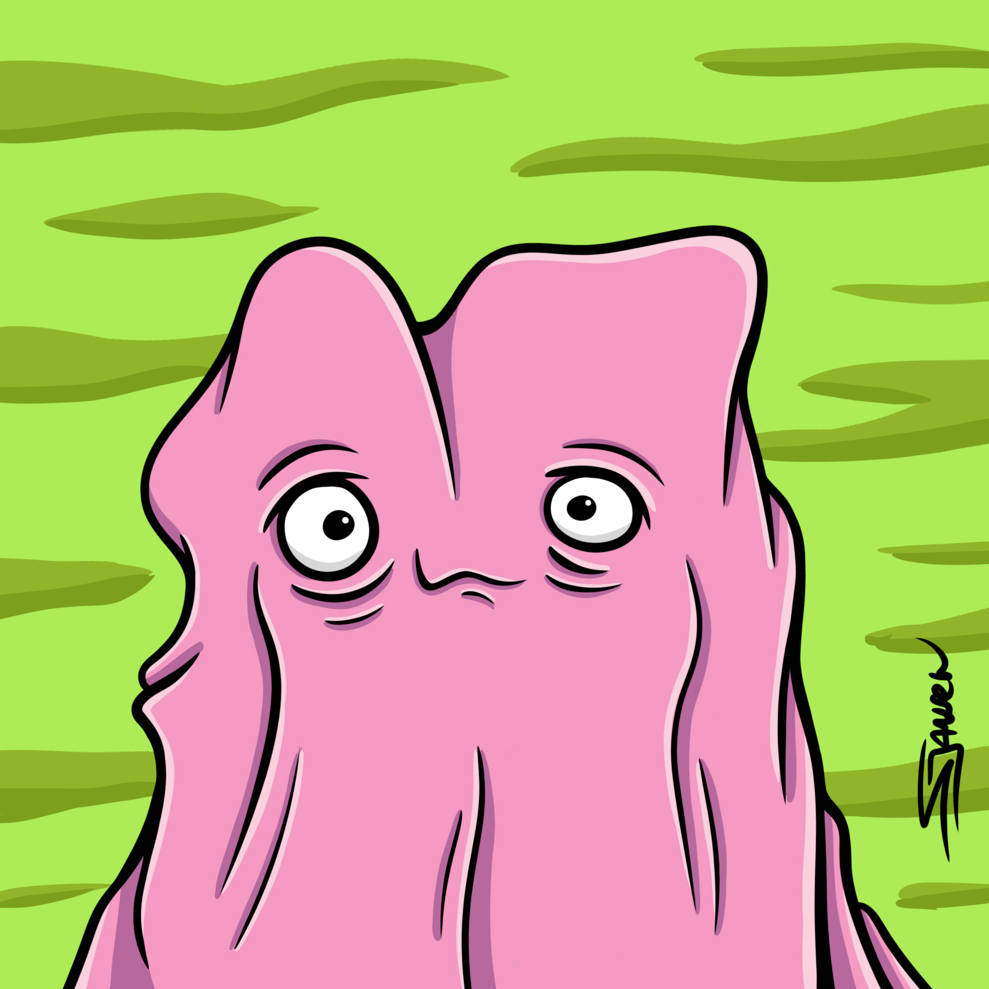 Sometimes I go outside to draw creatures or blobs not sure how to call them. While there was a beautiful radioactive sky a kind creature was passing by. His name is Blobbert and he was happy to help out. So I made this portrait and he was really excited about the result.