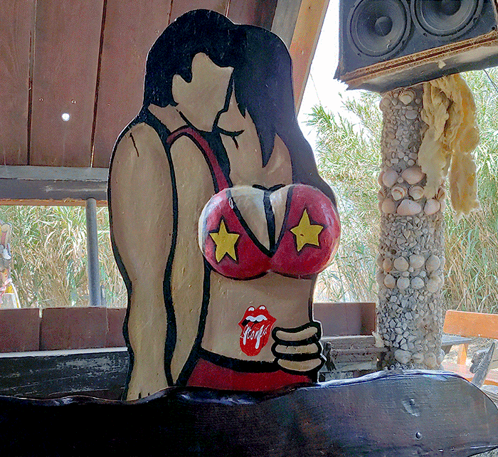 The photo was taken in July 2020 on vacation, in a place where you retreat into the shade when you can no longer stand in the sun. It is a wooden statue of an unknown artist (for me) and combines well with the pop culture of the 60s, in the style of Warhol, and some of Banksy’s works from the 90s.