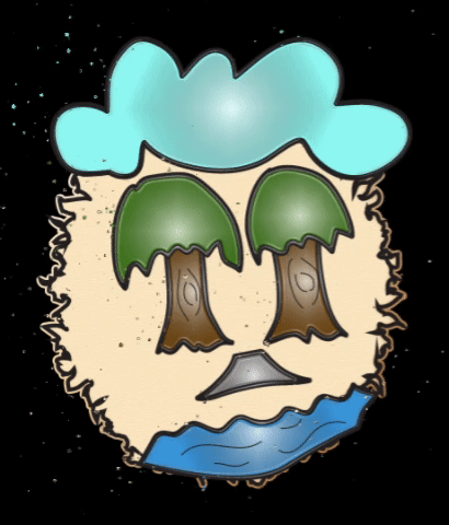 I draw a face of nature by putting trees for eyes, rock for nose, sea for mouth, clouds for hair and sand for face shape. And use pixaloop app for animation on it.