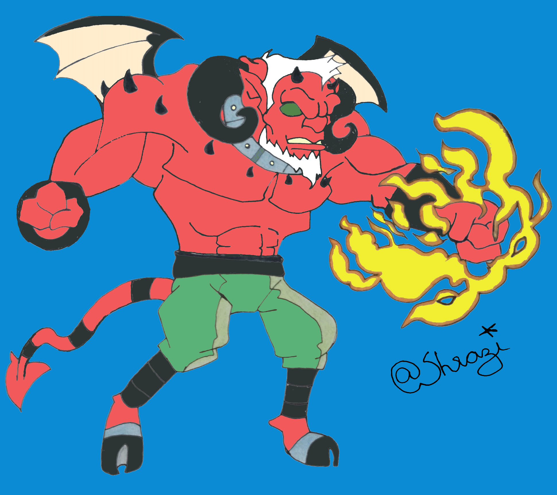 It was my hand drawing for Monster Art contest and I just add fire on frames to make this GIF. I am attaching my hand drawing (both with pencil colours and Digital colours) to unlockable files.