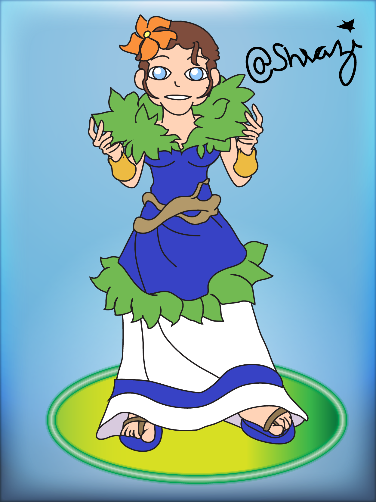 I draw Lyanna Natura of Splinterlands setting up her green jewelry with hands.