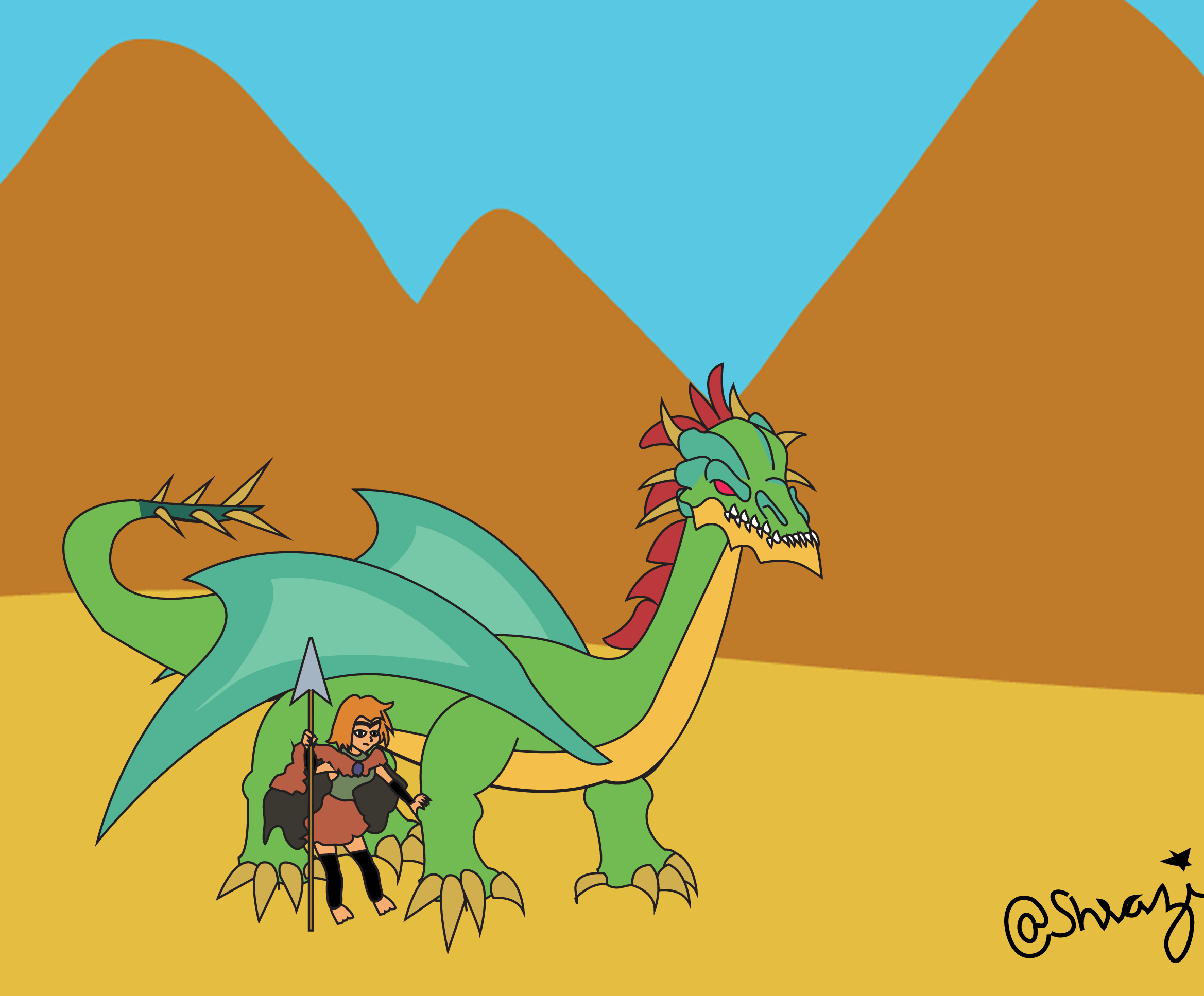 I draw Selenia Sky of splinterlands and by creating some moves, I create a GIF SCENE where Selenia rides her dragon to the sky.