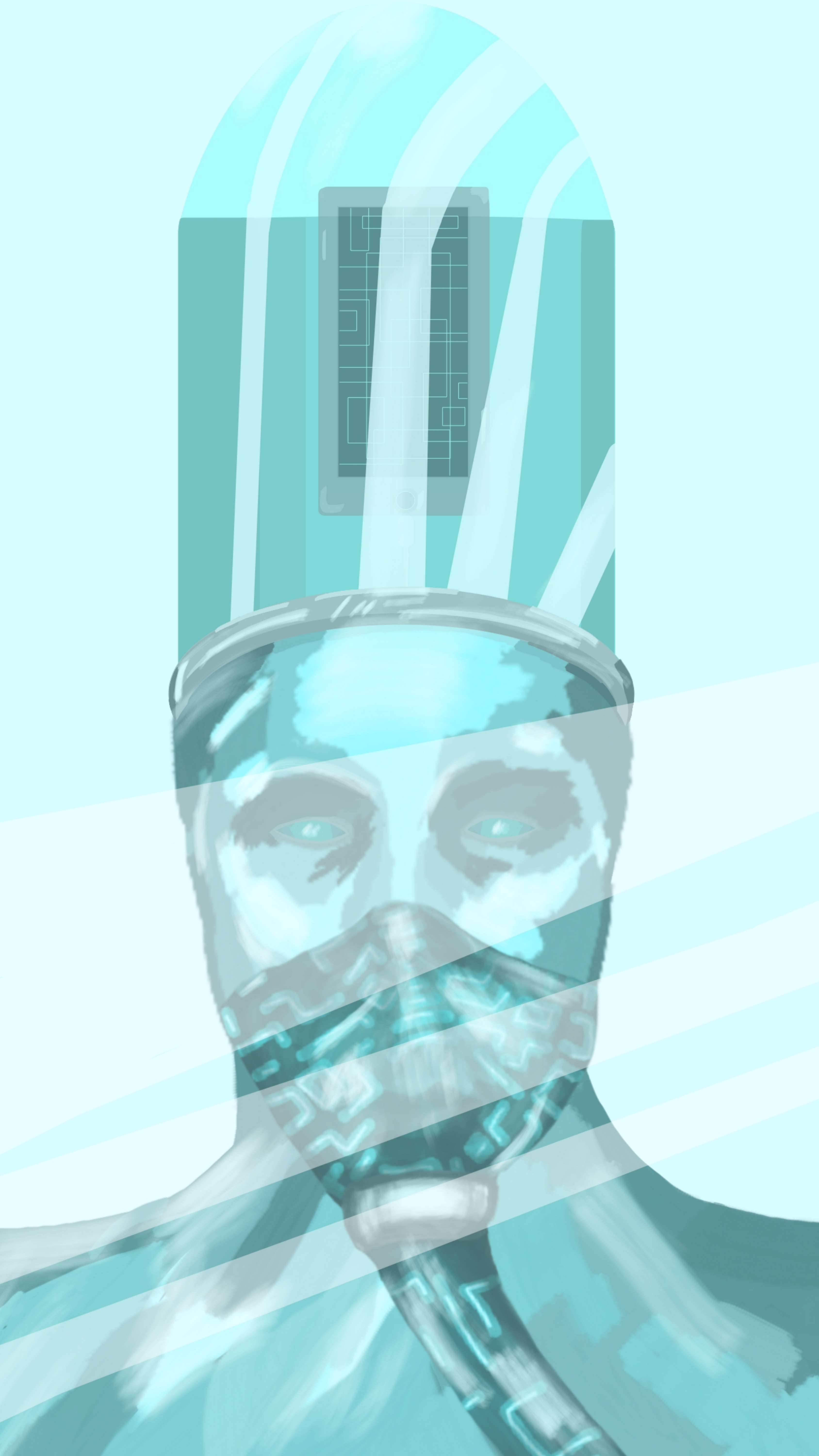 This artwork made of original sources, it shown the effect of technology on us it frozen us in the same place where we are, our brains replaced by smartphones and WE ARE FROZEN.