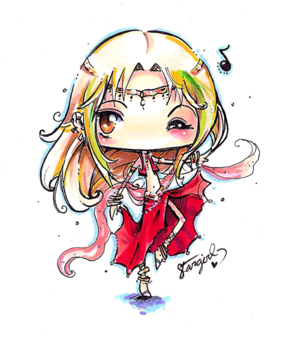 Both cute and mysterious, this chibi might just dance into your collection. Original Chibi Art by Stargirl drawn on a 4x6" card and colored with prismacolor and copic markers, colored pencils, and white gel highlights. ★ https://starmasayume.carrd.co ★ Twitter @starmasayume