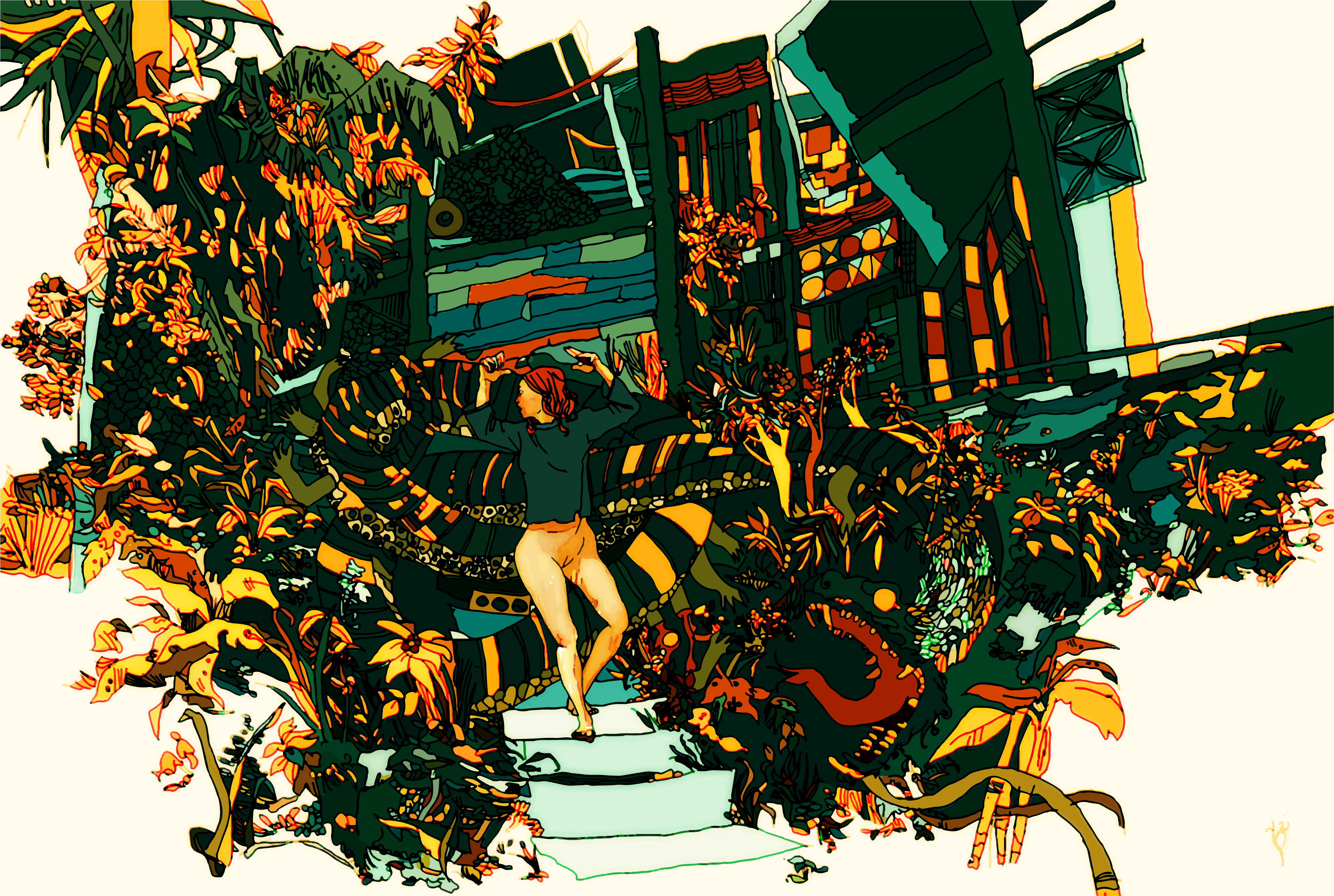 Illustration of a dream of a Caraqueña girl longing for nature. Made by our colleague and collaborator Ezequiel, member of the green dog