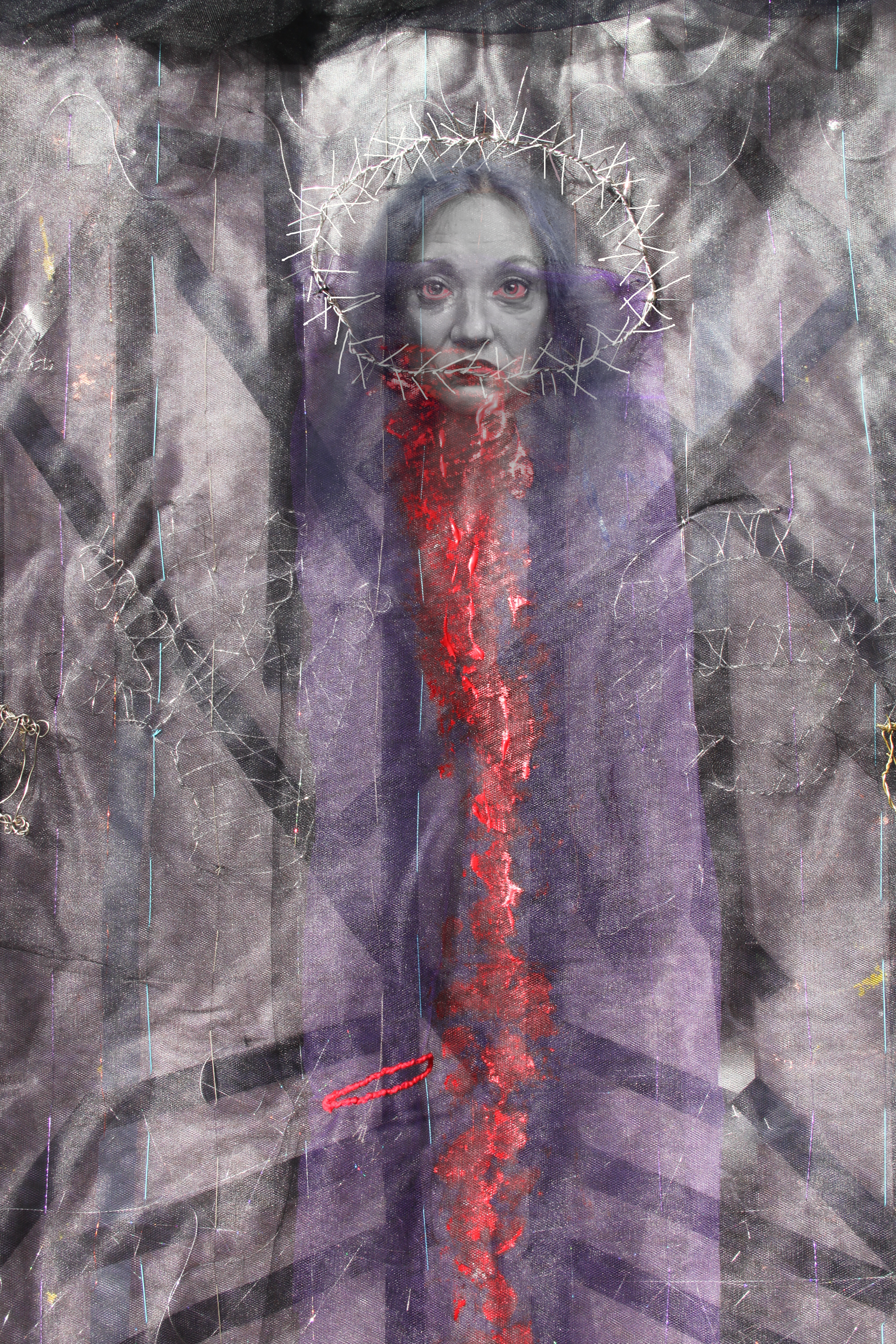JPG FILE -3168x4752 pz - 10,9 MB - It was born as a textile work, it is an installation, and is part of my collection called "Penelope Underground". With Photoshop I manipulated it by putting it behind a ghostly figure, so now one is a digital work.