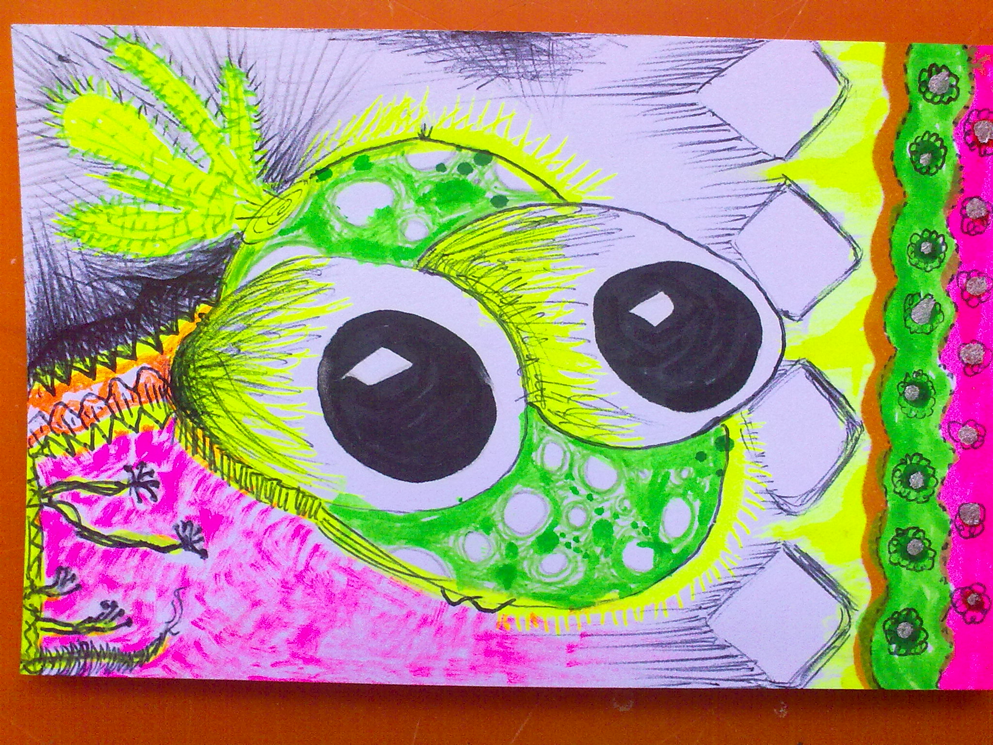 A part from "Shroom Fantsies". Hand drawing. Fluorescent.