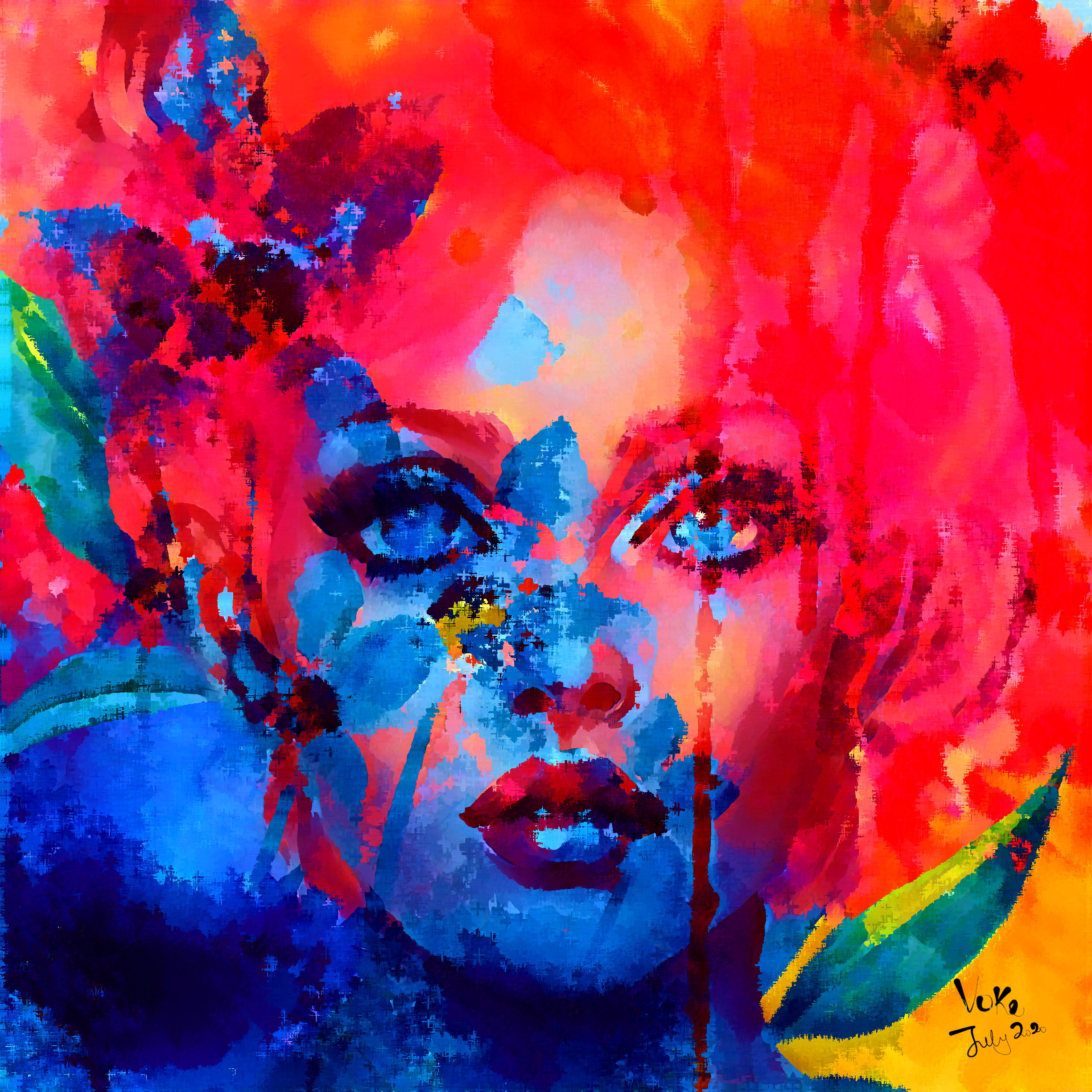 Watercolor, gouche digital art created to convey emotions. Signed and dated original art by Voke.