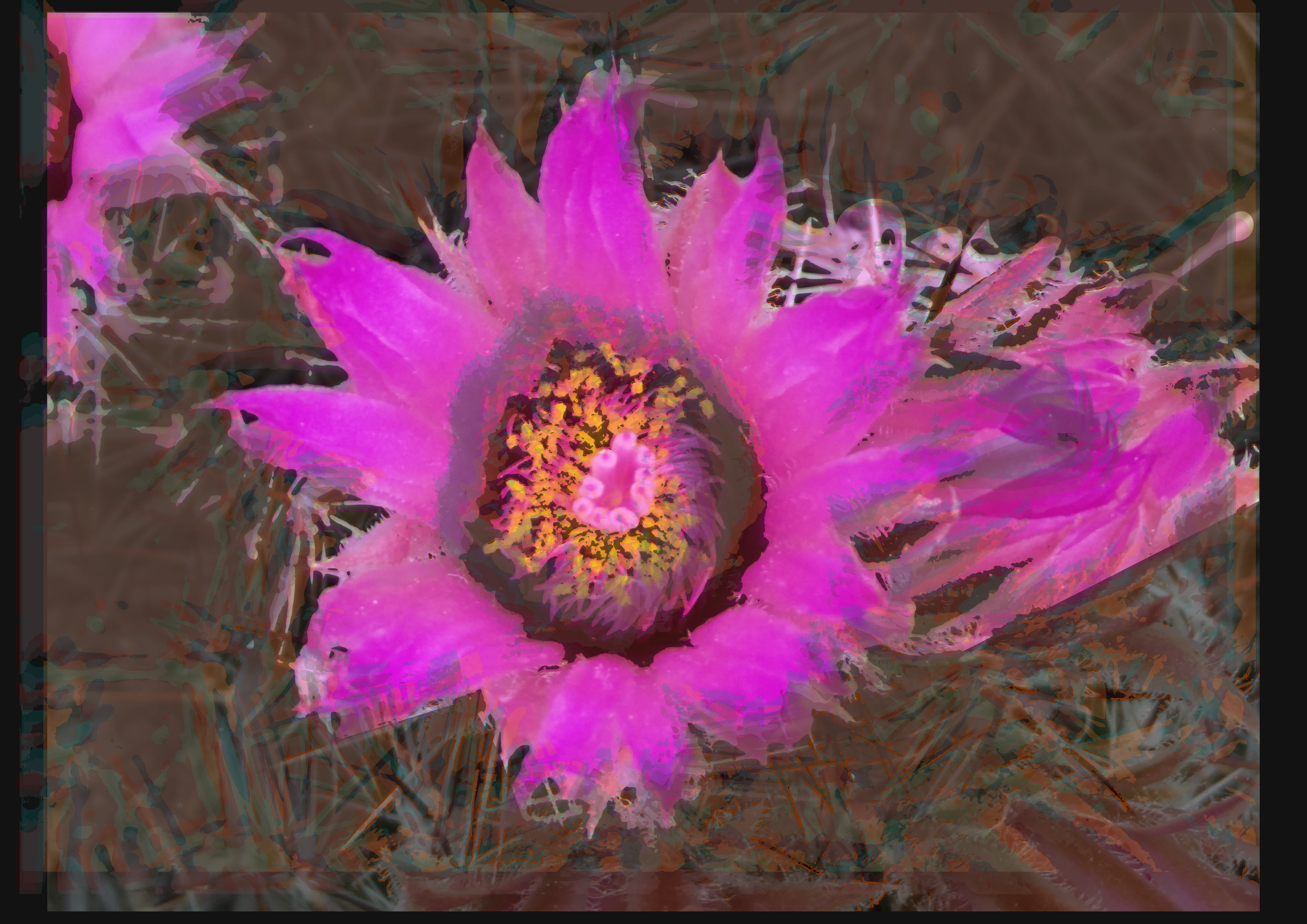 A photo with digital wood block style overprints. Crafted with Inkscape and other FOSS programs.