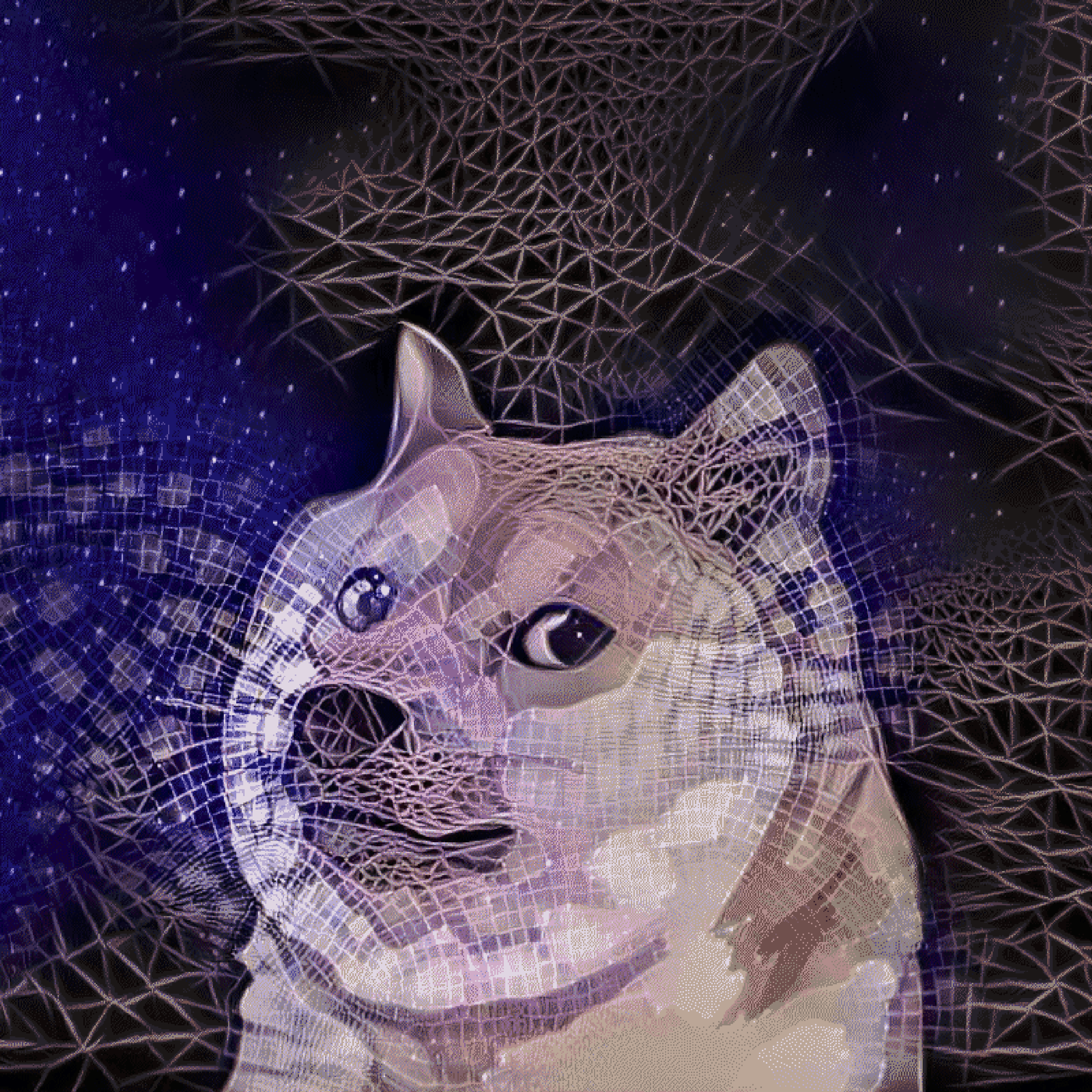 Dogecoin Crypto Art "Wuff So Rare" as a Non-Fungible Token (NFT). Dogecoin (DOGE) is a Litecoin-based meme coin that was launched in December 2013 picking up on the original "Doge" internet meme that was popular at that time. This cryptoart is a futuristic, Deep Dream AI-generated drawing of the official Shiba Inus Dogecoin puppy in space. Limited Edition. Only 5 Tokens available. Wuff, so rare!