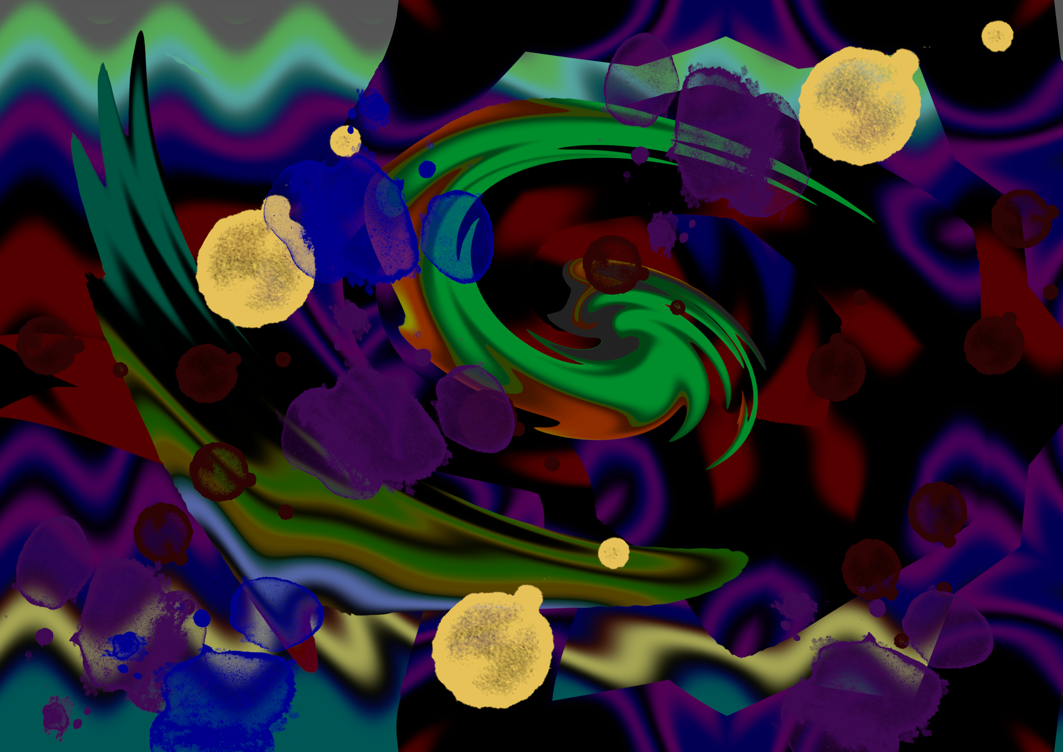In this painting, I tried to intuitively drop the trace of water droplets and blotches into the deep colors.