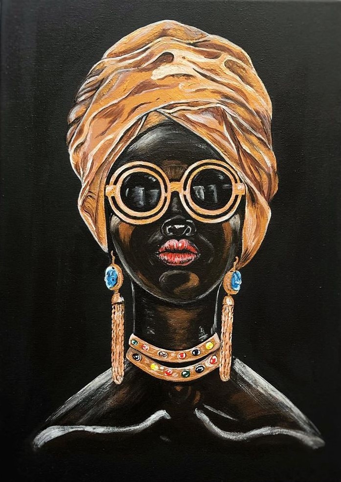 African woman. I paint pictures with acrylics. Africa is one of my favorite topics.