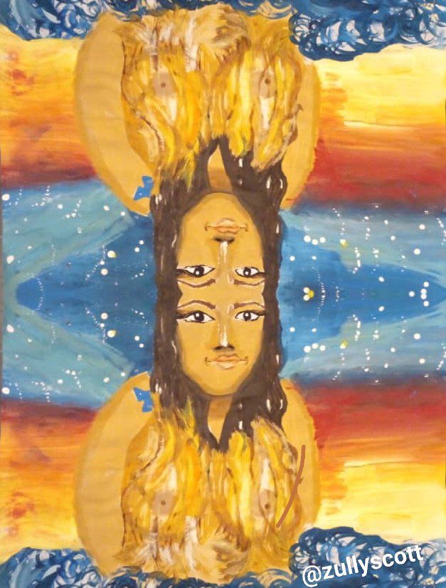 Piece made in acrylic paint, digitized based on a self-portrait of the author. It describes the author's nostalgia for the sea.