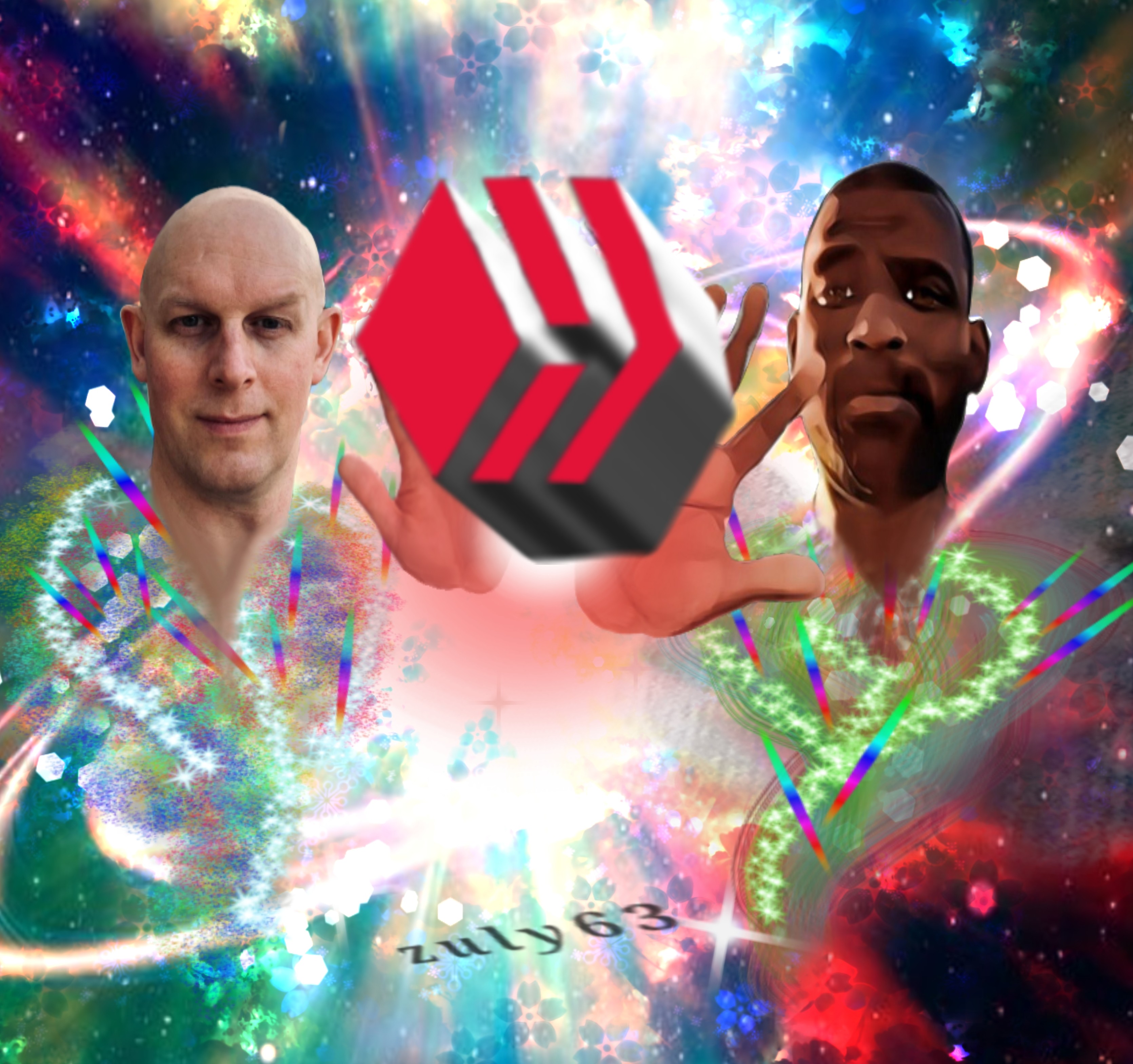 Digital art based on photo manipulation. Fantasy that expresses the power of 2 or more people to take Hive to the clouds of success! Medidas: 3342 x 3137 10.5 MB